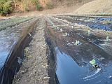 5月の収穫を目指している野菜たちなので、地温を上げる意味で黒ビニールマルチを使用しています。